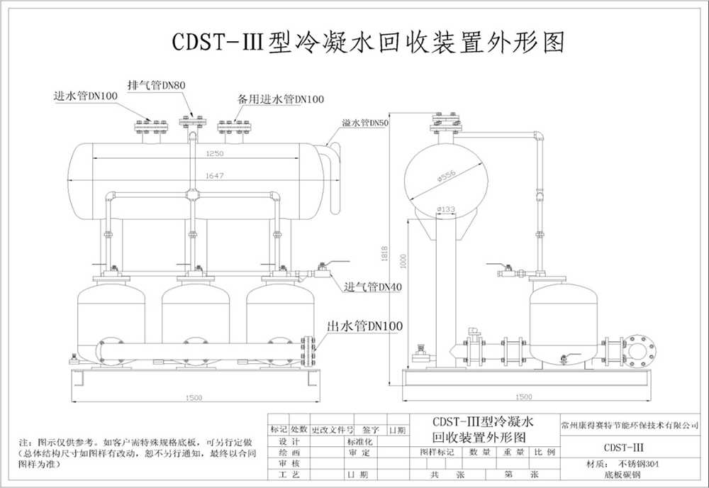CDST-Ⅲ型冷凝水氣動回收組合泵裝置(除底板)均為不銹鋼304制作,包括內部機構,堅固防蝕。