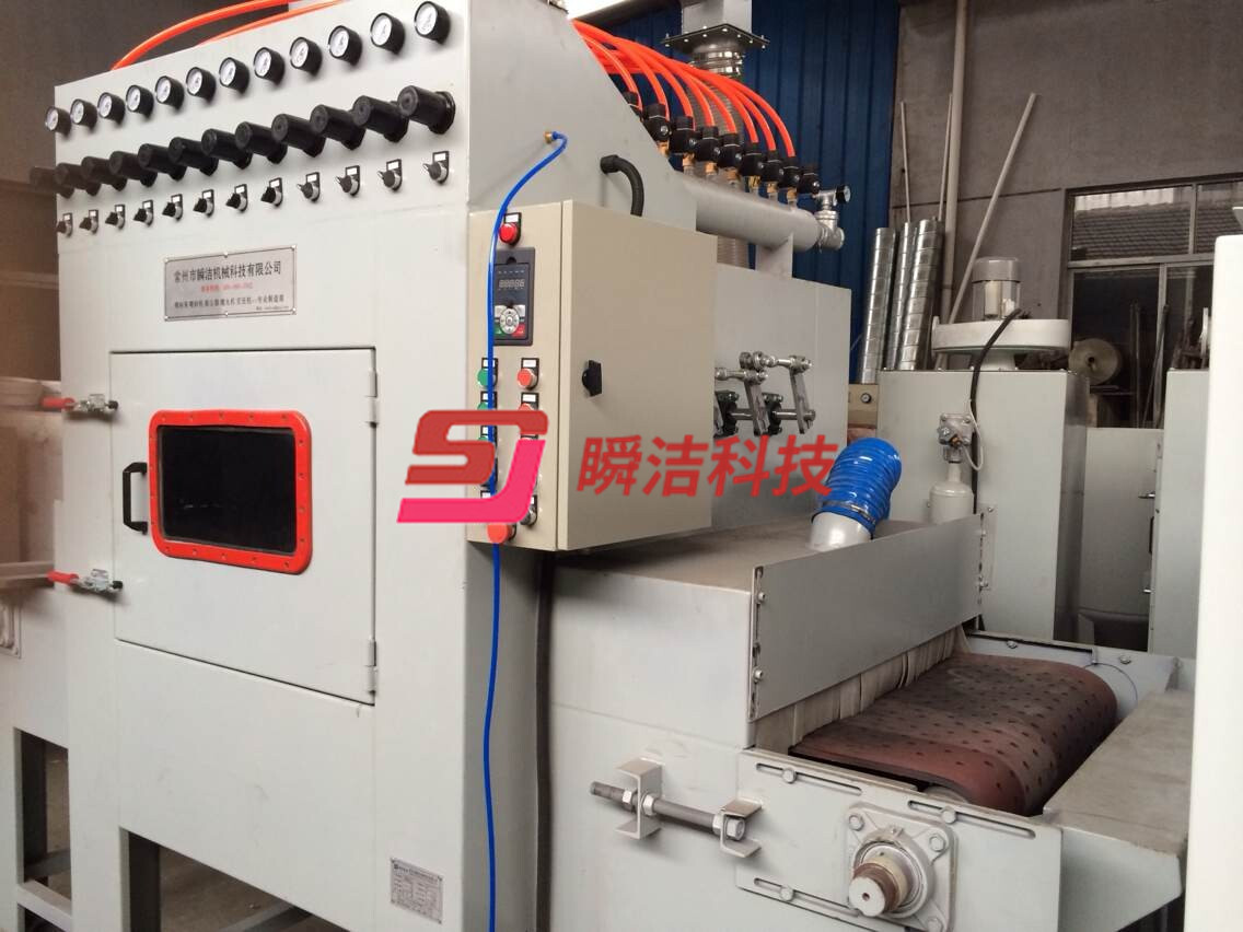 1、本系列機為平面自動輸送式噴砂專用機、輸送速度可用變頻數字控制、噴砂速度快、加工品質穩定、操作簡單。