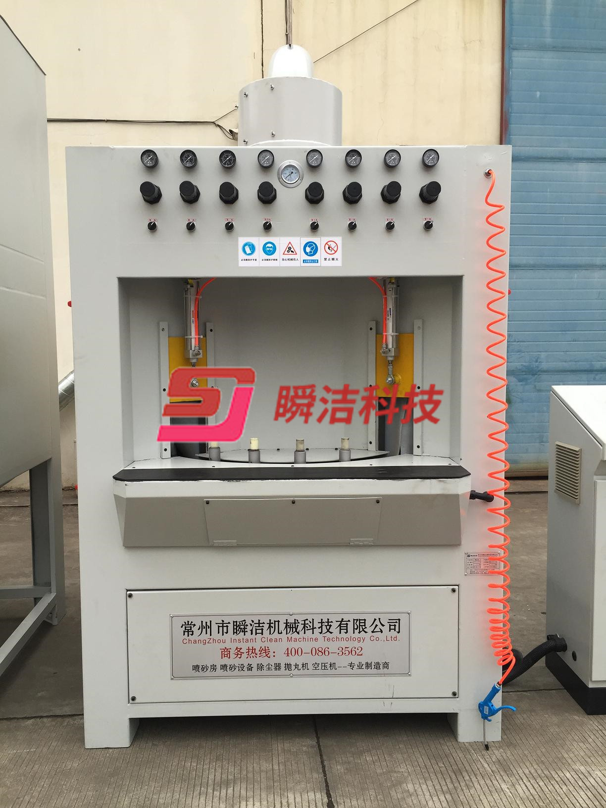 7、 該設(shè)備出料口設(shè)計(jì)吹凈槍3把,保證每個(gè)產(chǎn)品噴砂磨料無殘留,潔凈美觀。