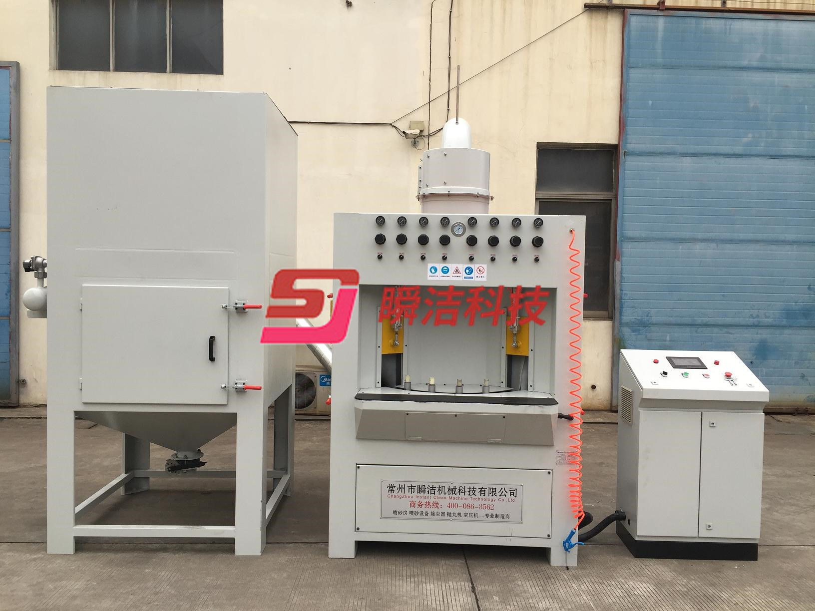 5、 本設(shè)備采用觸摸屏設(shè)計(jì),自動(dòng)化程度高,PLC程序化控制,設(shè)有互鎖裝置、報(bào)警裝置、磨料檢查裝置、等。