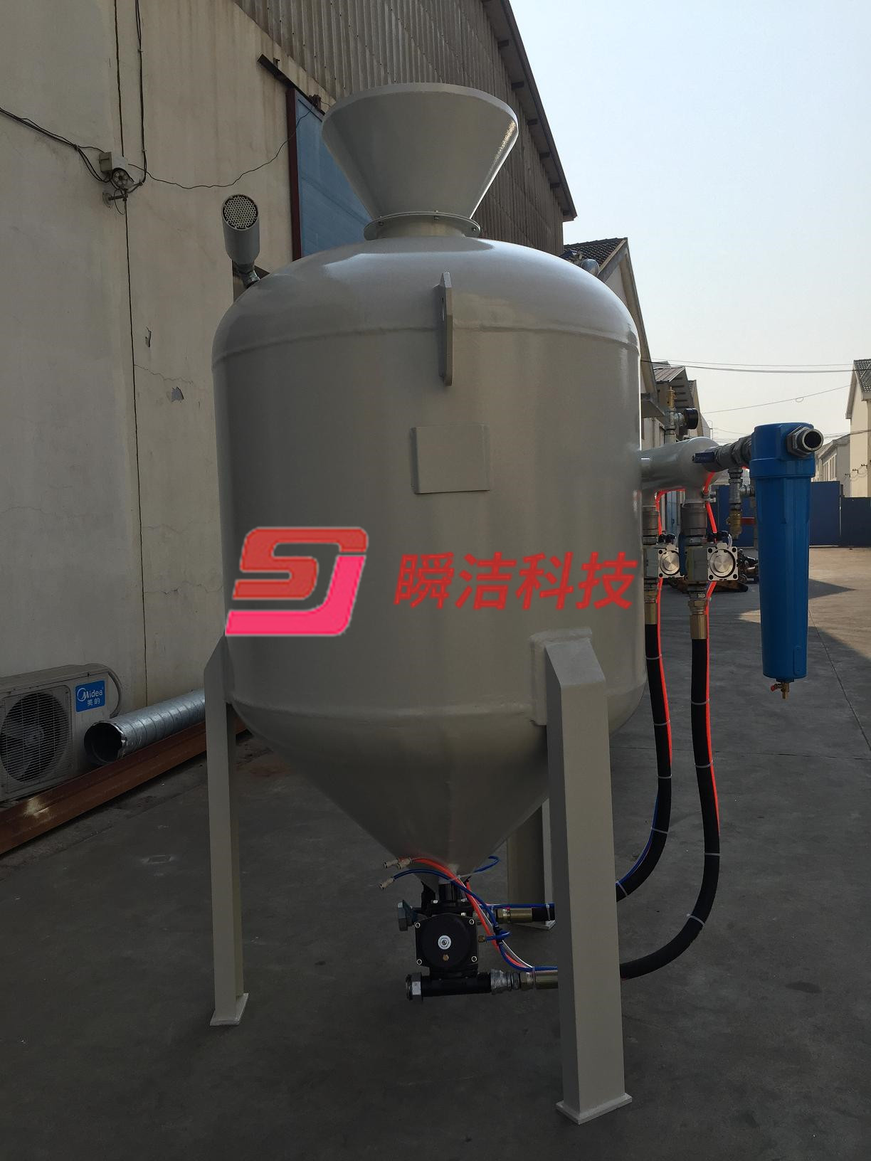 2、本機采用了直通型噴砂閥,徹底解決了磨料的堵塞,噴砂出口的速度可達200M/S