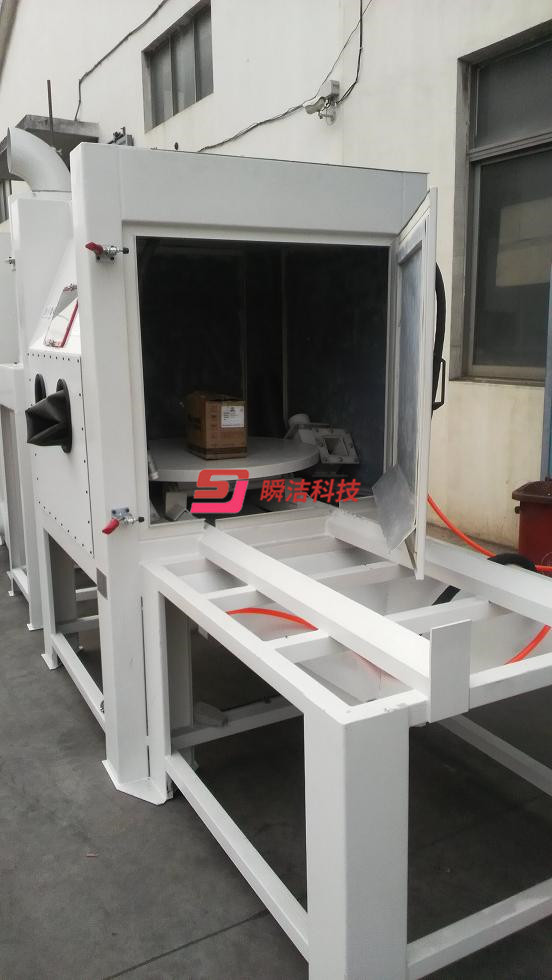 3、配備活動臺車,和轉(zhuǎn)盤,操作時將工件放在轉(zhuǎn)盤上,然后推入機(jī)內(nèi)即可噴砂作業(yè),操作簡單省力。