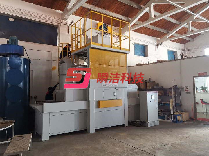 該設備的磨料循環方式為機械回收,采用流幕式式多級分離+旋風分離,可實現磨料與粉塵的有效分離,保證產品加工的高質高效,同時最大限度節省磨料的消耗。高效濕式除塵系統,三級過濾,能高效地清理粉塵,防止粉塵污染,對于鋁鎂合金產品,放心使用,達到環保和阻燃要求。